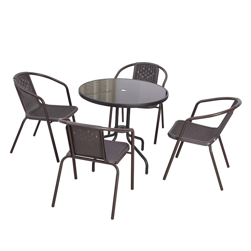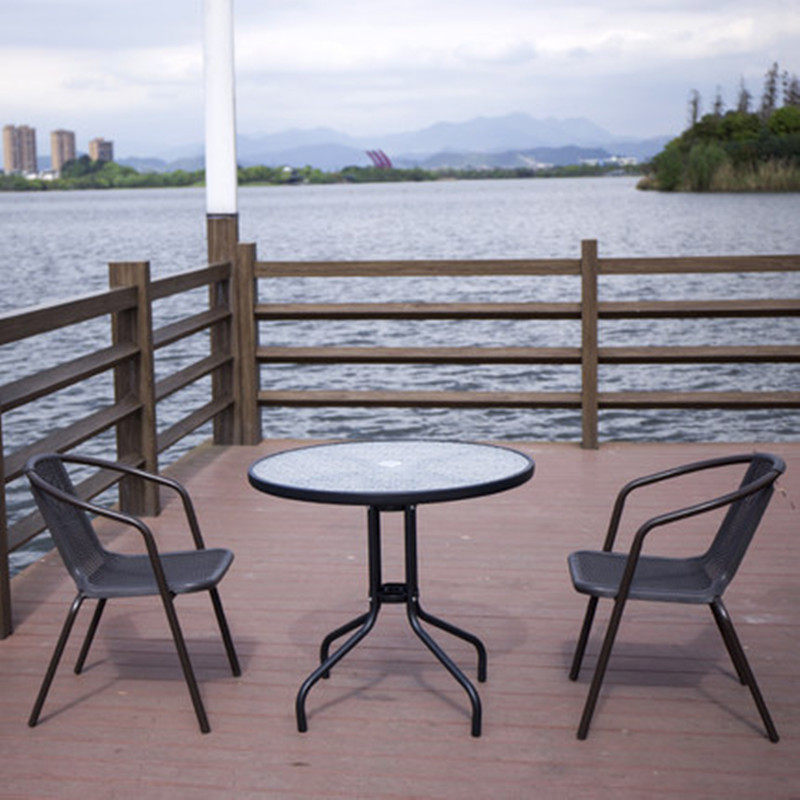 Balcony table and table rattan chair Three sets of outdoor round table leaning back chair combination minimalist casual patio small tea table composition