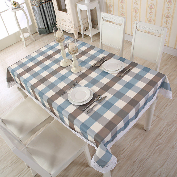 Rectangular square grid table cloth cloth art cotton linen small fresh round table waterproof cute Korean style brief modern