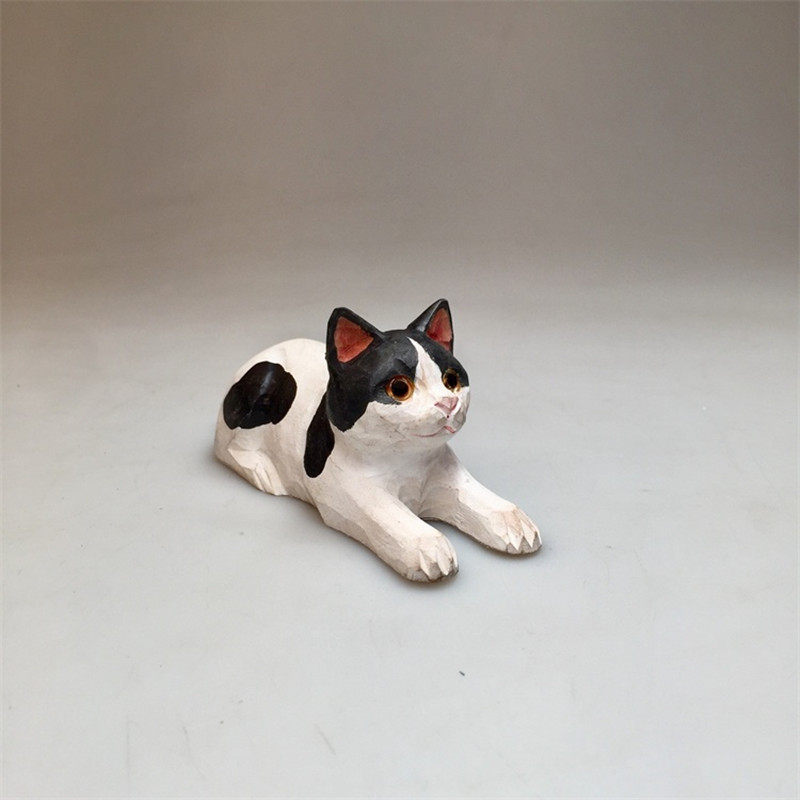 Wooden craft cat hand-carved cute cat ornaments can be customized gifts home decorations creative living room