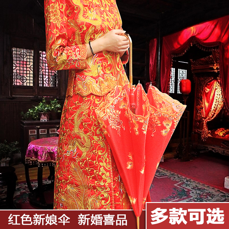 Red umbrella wedding bridal umbrella wedding celebration out of the wedding umbrella lace lace embroidery Chinese wedding long handle umbrella vintage wedding umbrella
