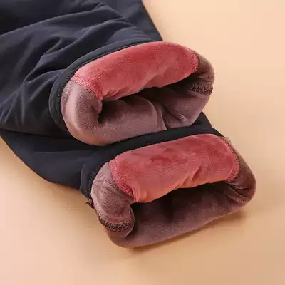 Winter thick slim body warm pants women's three layers plus velvet thickened winter knee pads plus large size high waist glossy cotton trousers