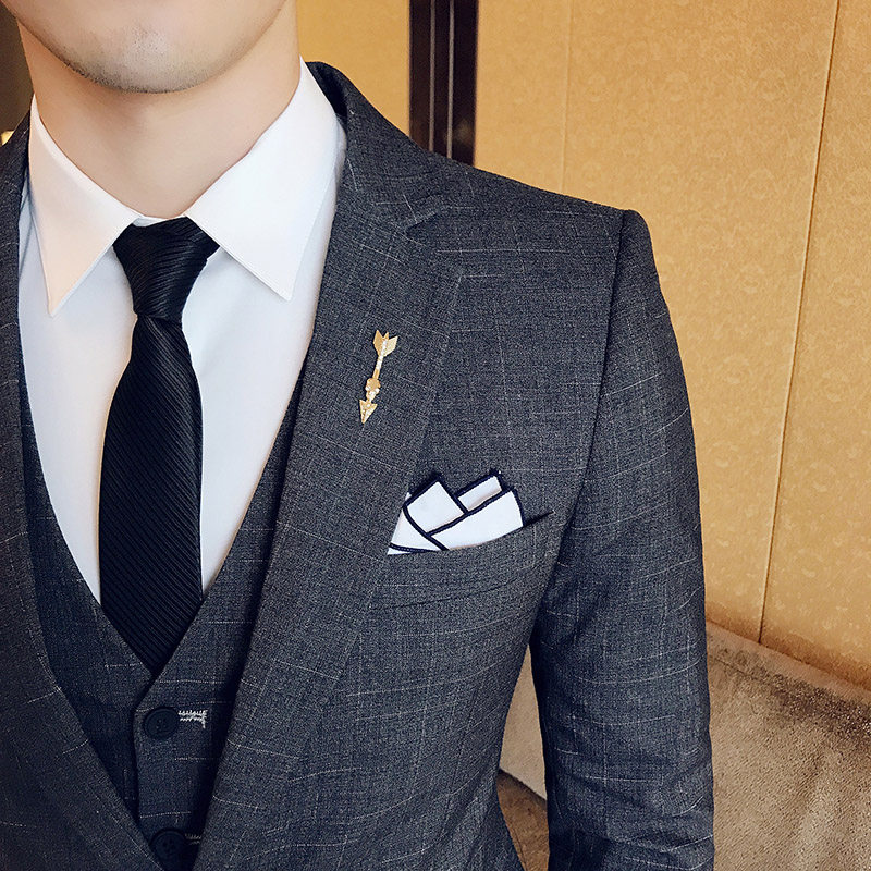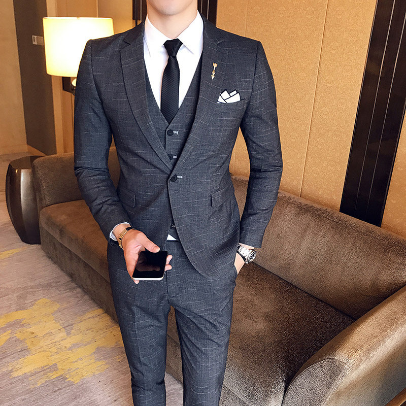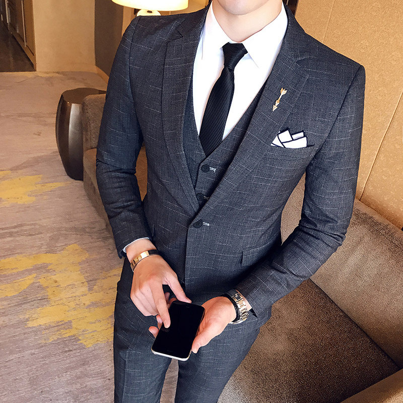 Suits Men's Three-piece British Slim Professional Business Dresses Korean Style Best Man Groom Wedding Dresses