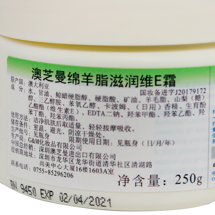 Original imported GM Australian sheep oil VE moisturizing cream 250g body dairy moisturizing and moisturizing body