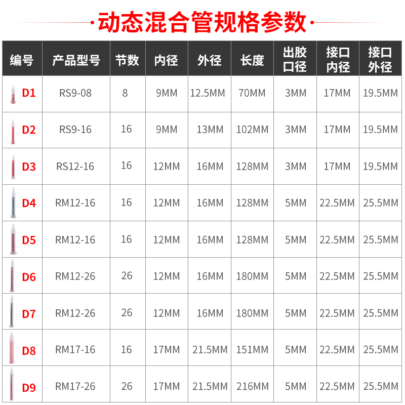 ab dynamic mixing tube RM12-26 dispensing machine electric stirring dispensing valve mixing stick screw needle round mouth