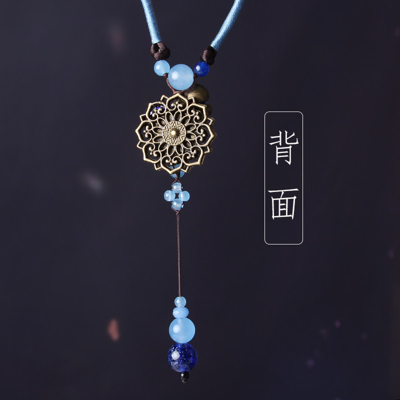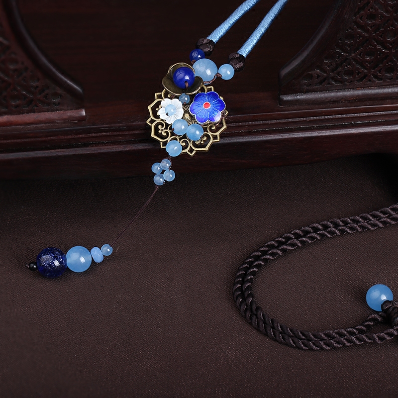Vintage elegant chalcedony beads cloisonne sweater hanging decoration Sweater chain long version necklace Women fashion wild jewelry spring and summer