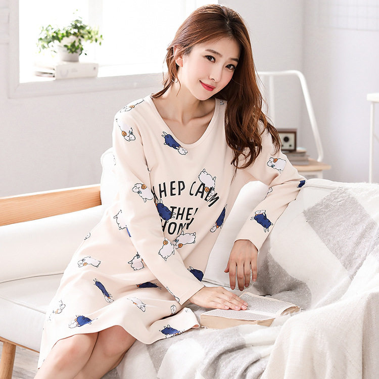 Long Sleeve Sleeping Dress Lady Full Cotton 100% Pure Cotton Spring Autumn Winter Teen Girl Students Cute Loose Large Size Pyjamas Dress Skirt
