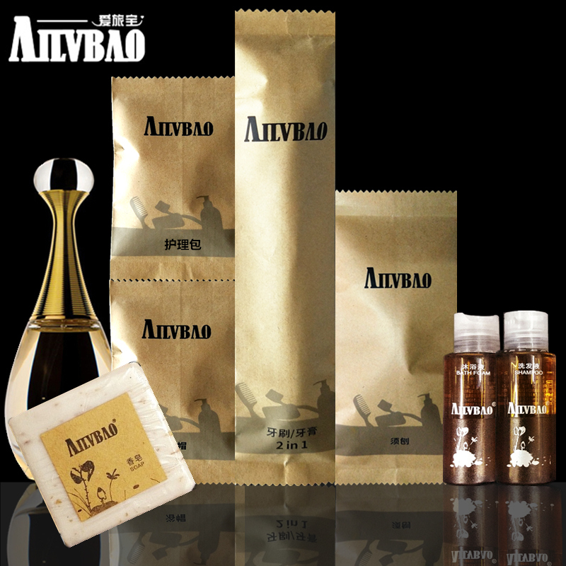 (kraft bagged) Six small pieces starred hotel disposable toiletries with six all-in-one teeth