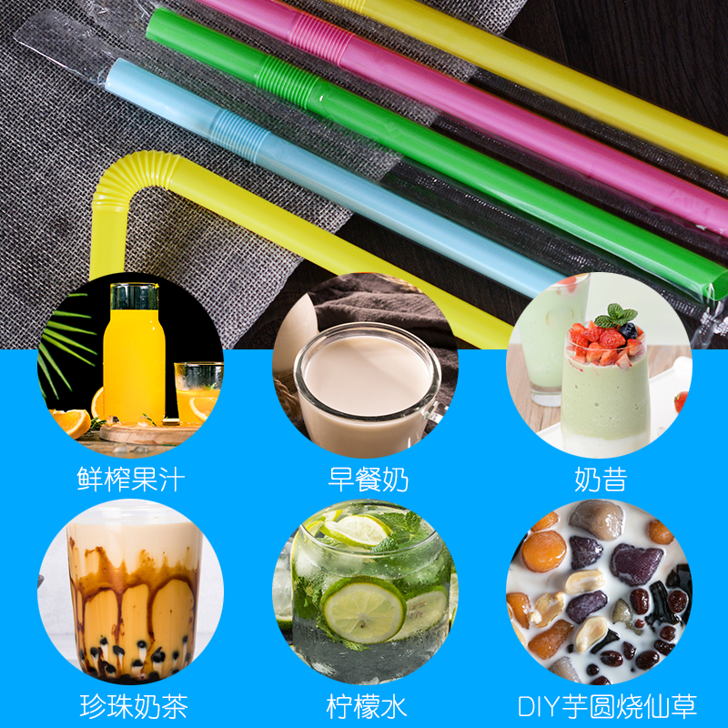 100 Colored Bent Pipe Pointed Juice Soy Milk Soy Milk Tea Coarse Straw Disposable Plastic Hard Straws Independent Packaging