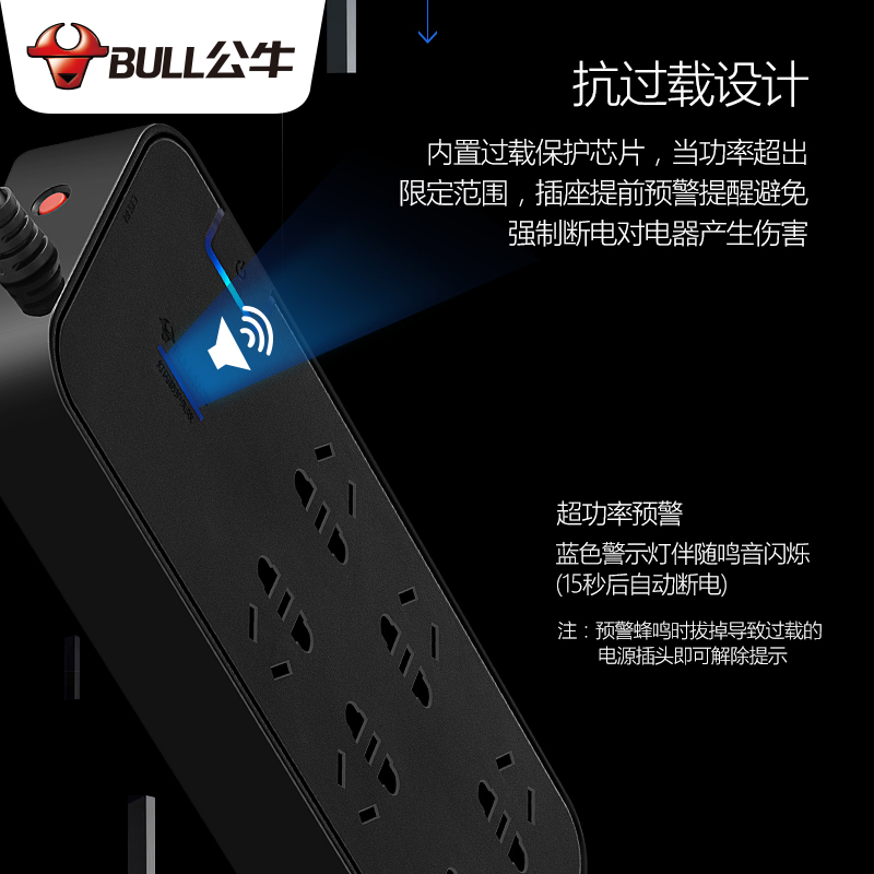 Lightning protection socket bull triple lightning protection anti-surge multifunction home extension cord Intelligent insertion line wiring board