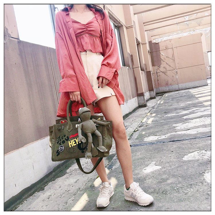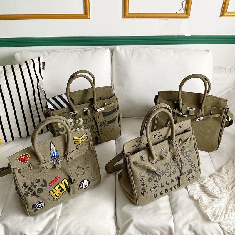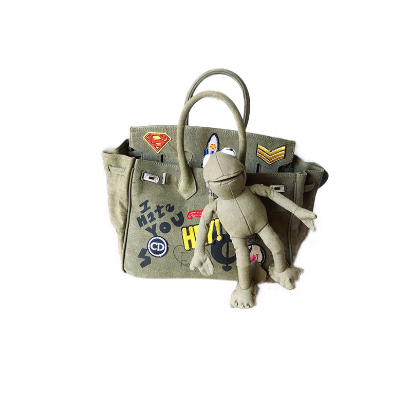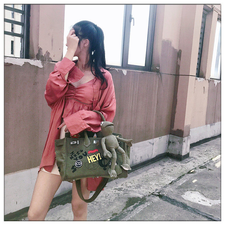 Dongdaemun Fan Weiqi Original Military Canvas Handheld Messenger Tote Bag Frog Platinum Bag Graffiti Bag Big Bag