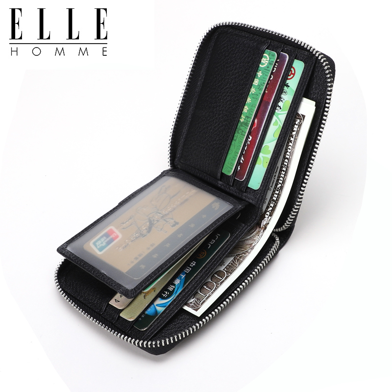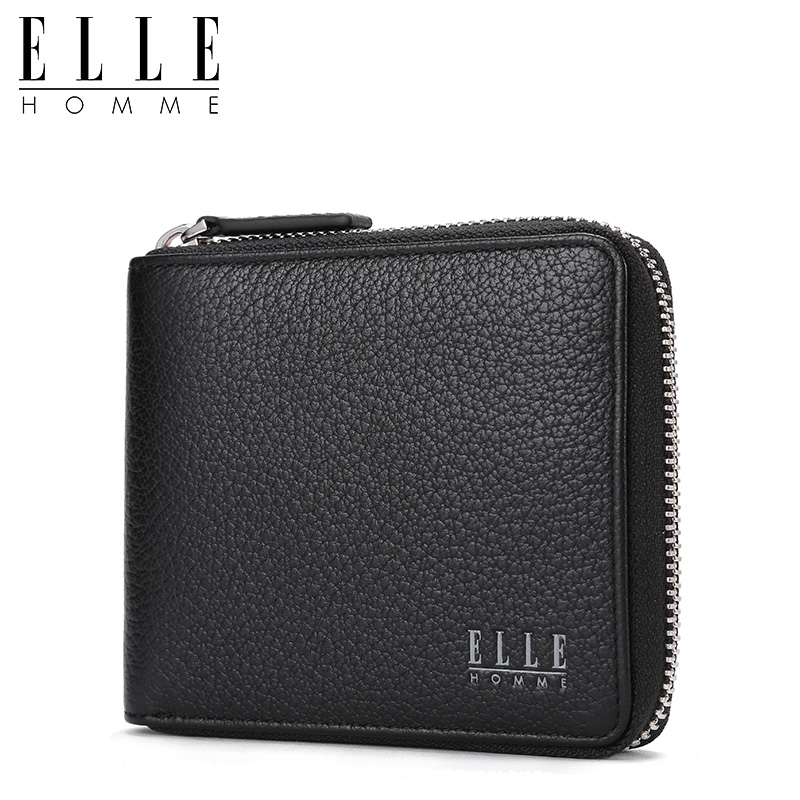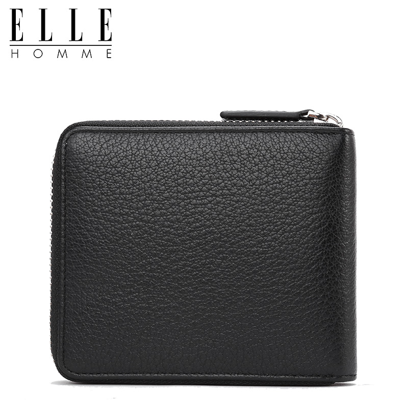 ELLE HOMME new leather lychee pattern wallet men's business bill clip short zipper multi-card slot