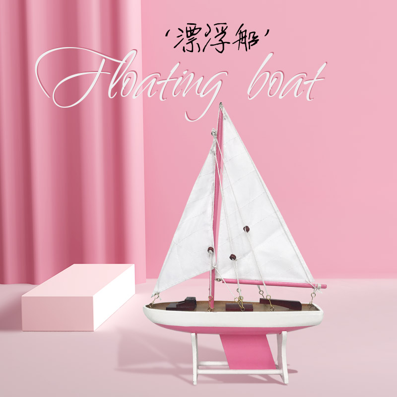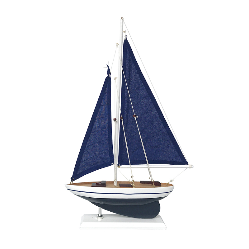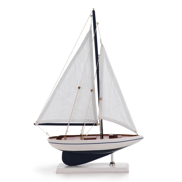 Mediterranean style sloop wooden sailing boat model ornaments Smooth sailing craft boat American small wooden boat model boat