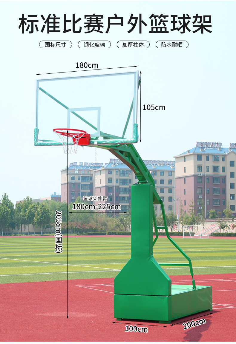 Small box basketball stand (6 inch tube) imitation hydraulic basketball stand upright round tube basketball stand directly buried round tube basketball stand (green) outdoor table tennis table tempered backboard
