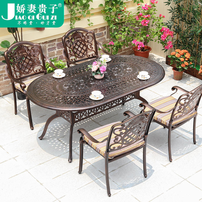 Cast aluminum outdoor table and chair combination Villa courtyard Outdoor garden chair Simple terrace Balcony Leisure table and chair set