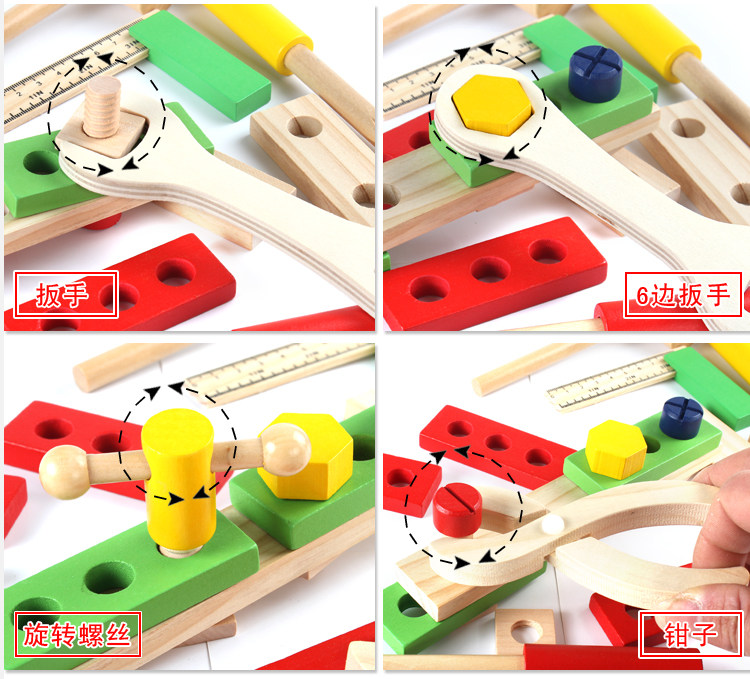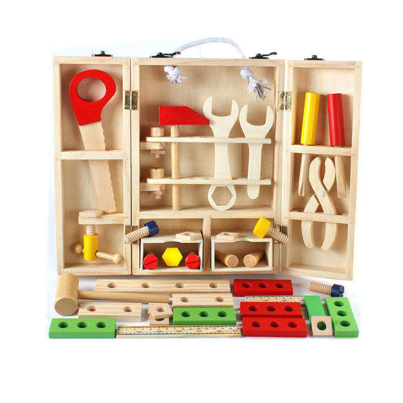 Child repair wooden toolbox toy simulation dismantling multi-working carpenter boy baby's family puzzle suit