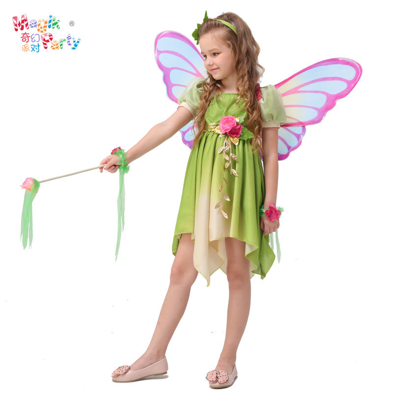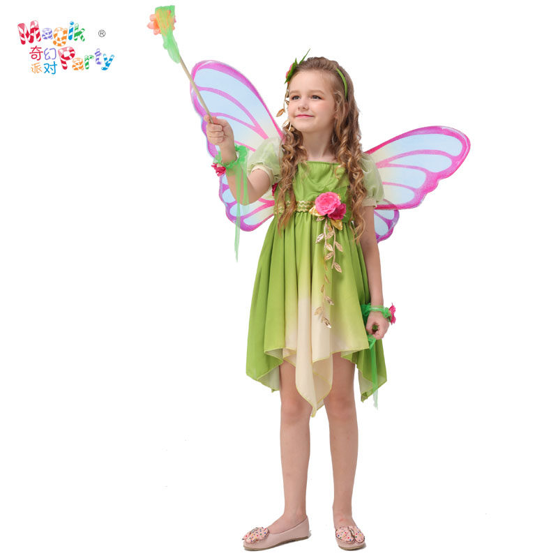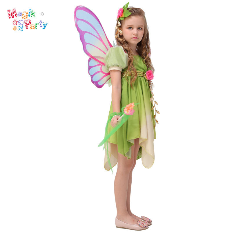 Halloween Cosplay Girls Stage Performance in Children Performance Costume Princess Dress Cute Green Fairy Skirt