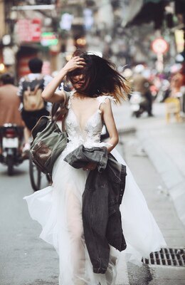 Private custom-made BERTA light travel Mori style European and American sexy deep V-neck wedding dress with simple temperament and best selling female