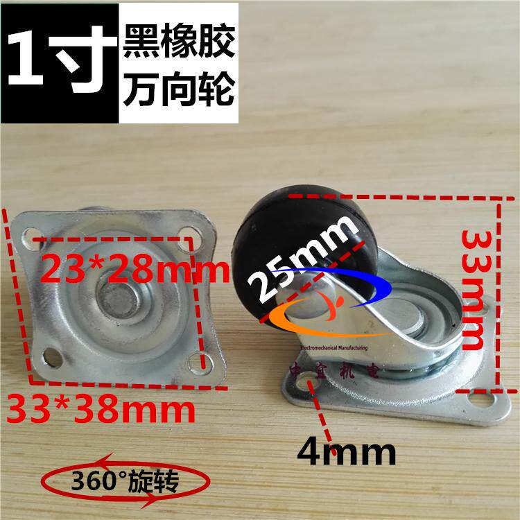 1 inch black rubber wear-resistant does not hurt the floor universal wheel wheel small wheel silent drawer caster 8 pieces 1 piece