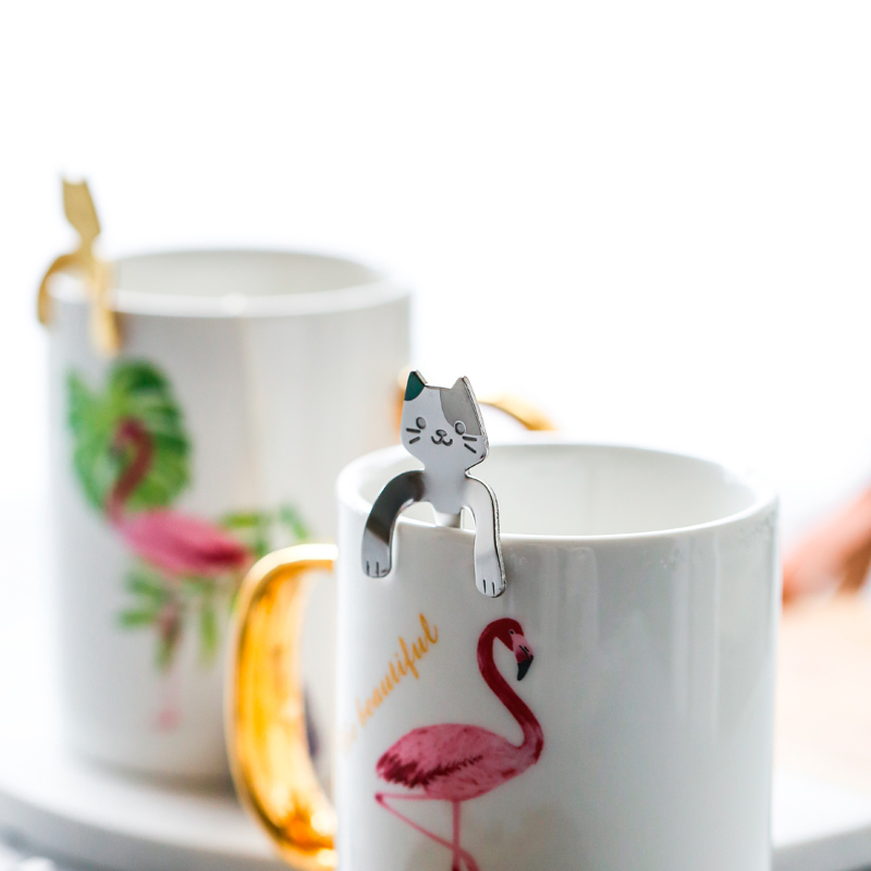 April MEOW Cute Cat Coffee Spoon 304 stainless steel stirring spoon sweet spoonful spoon can be hung up along a small spoon-Taobao