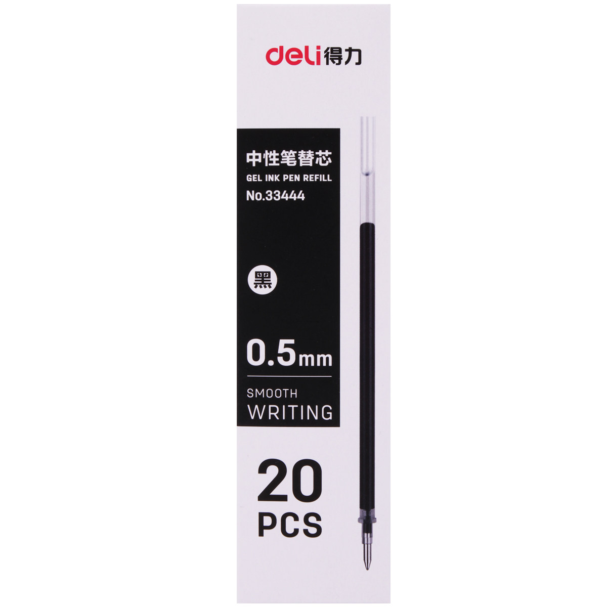 Deli 33444 Gel refill universal refill 0 5mm standard bullet black water-based refill 20 pcs