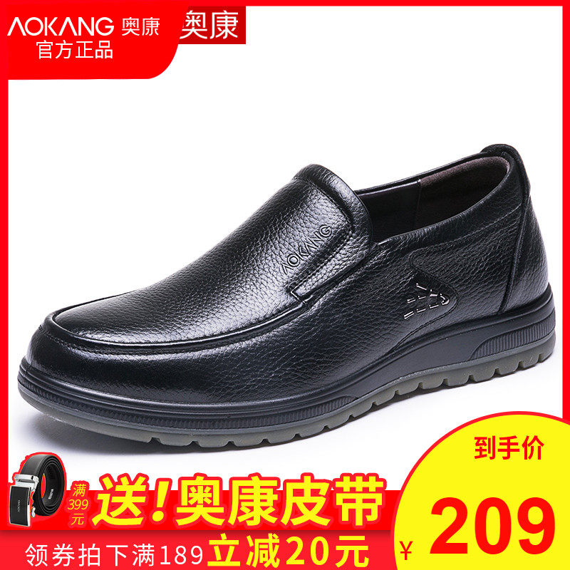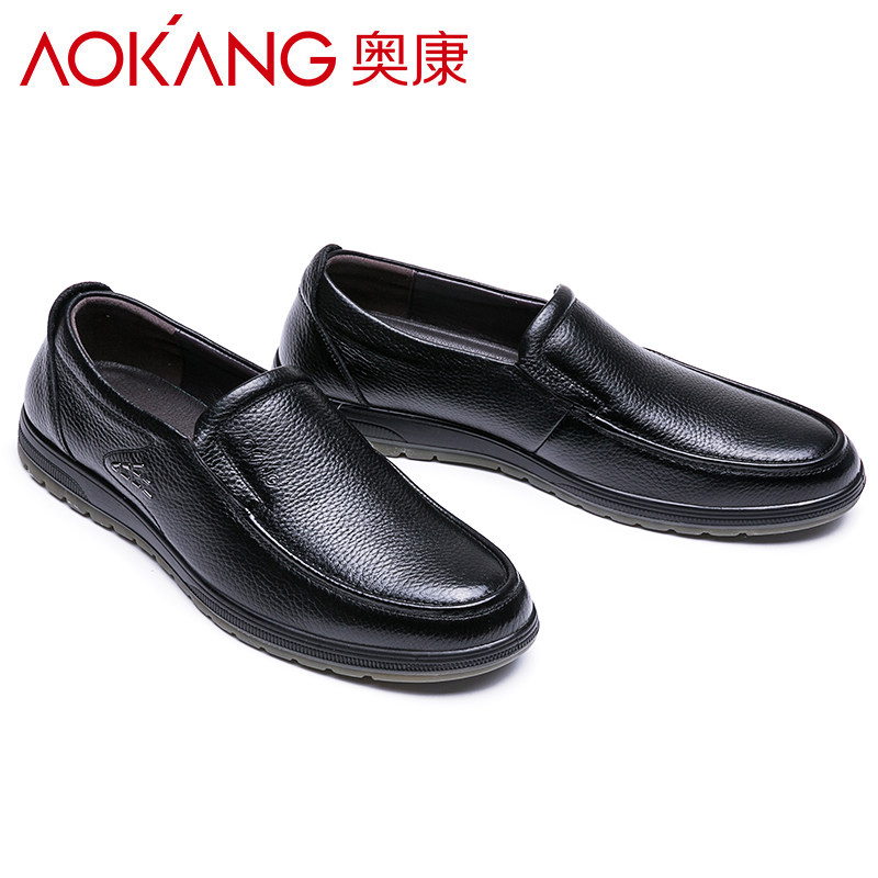 Aokang men's shoes leather shoes men's leather soft bottom non-slip casual spring dad shoes middle-aged and elderly men's leather shoes large size