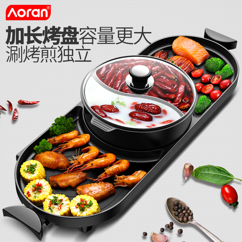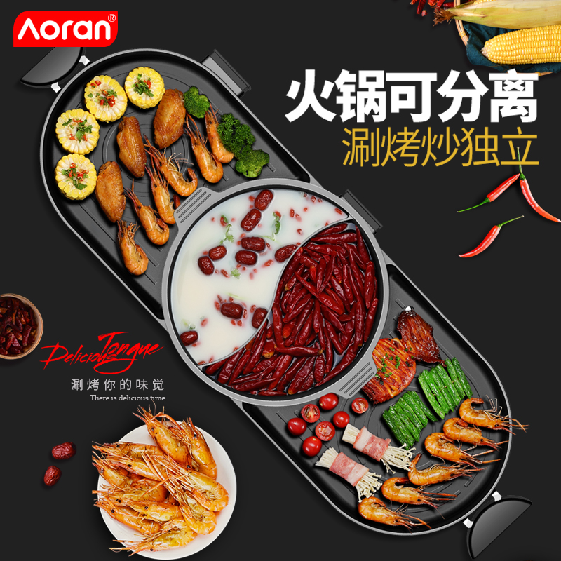 Aoran electric oven Household smoke-free electric baking tray Multi-function shabu-shabu hot pot Barbecue one-piece pot Non-stick pot