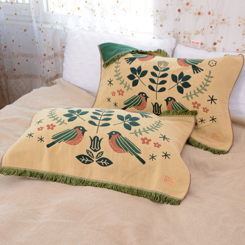 Flow Su Pure Cotton Pillow Towel Pair Four Layers Gauze Pillow Towel Fabric Breathable sweat Sweat Latex Pillow Towel Pair 55x75