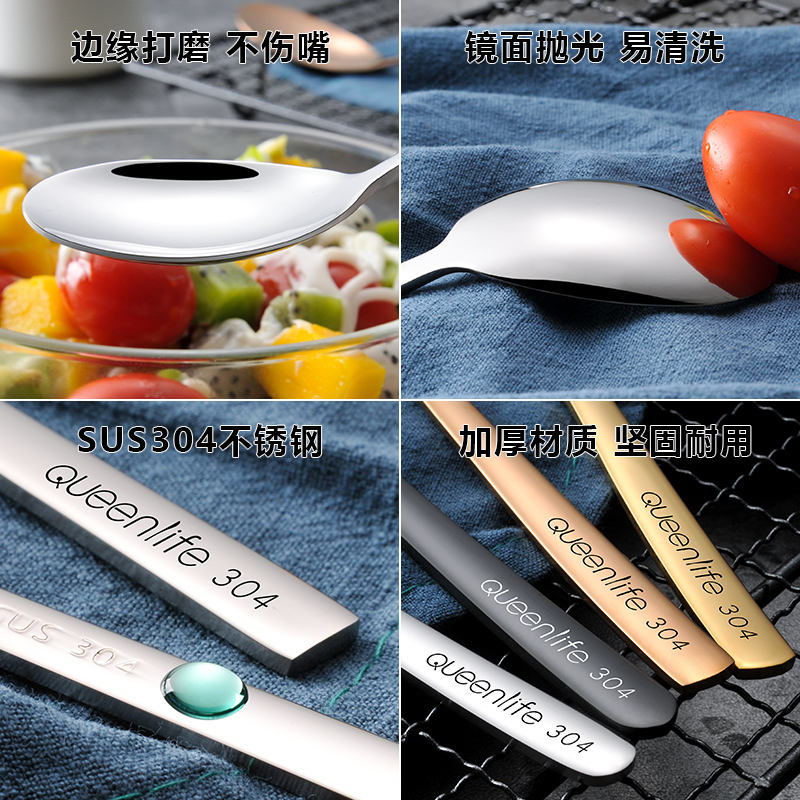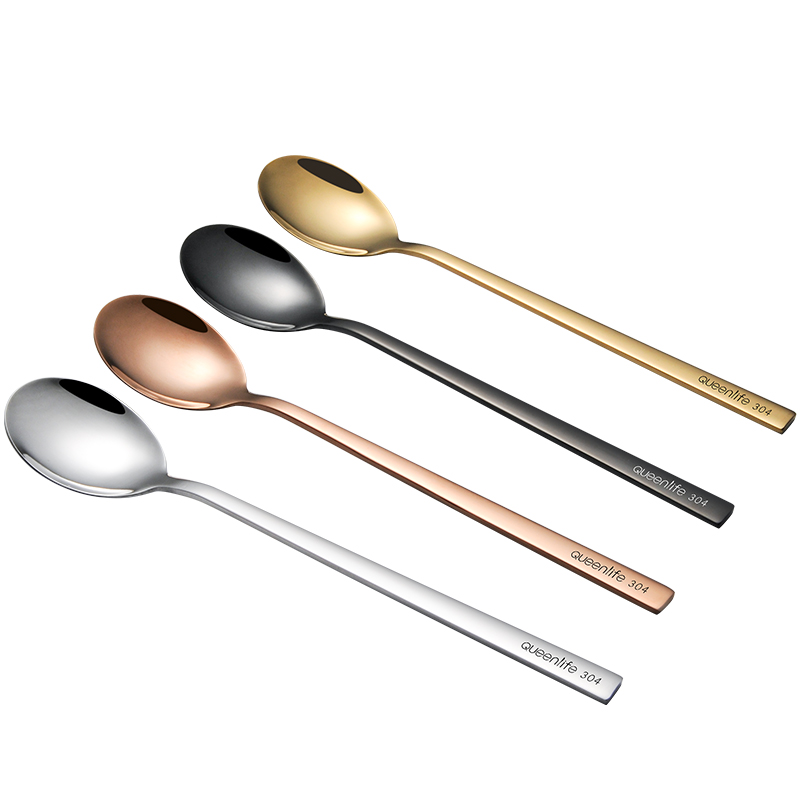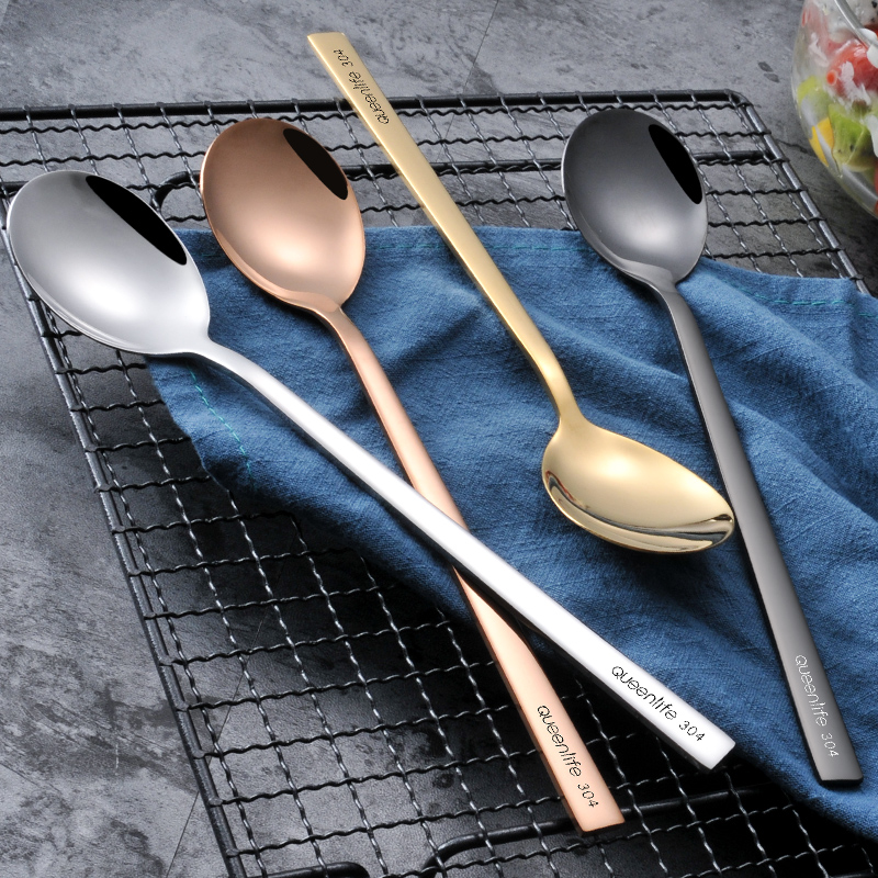 Korean style 304 stainless steel spoon Long handle bibimbap spoon Eating spoon Household adult creative gold plated spoon mixing spoon