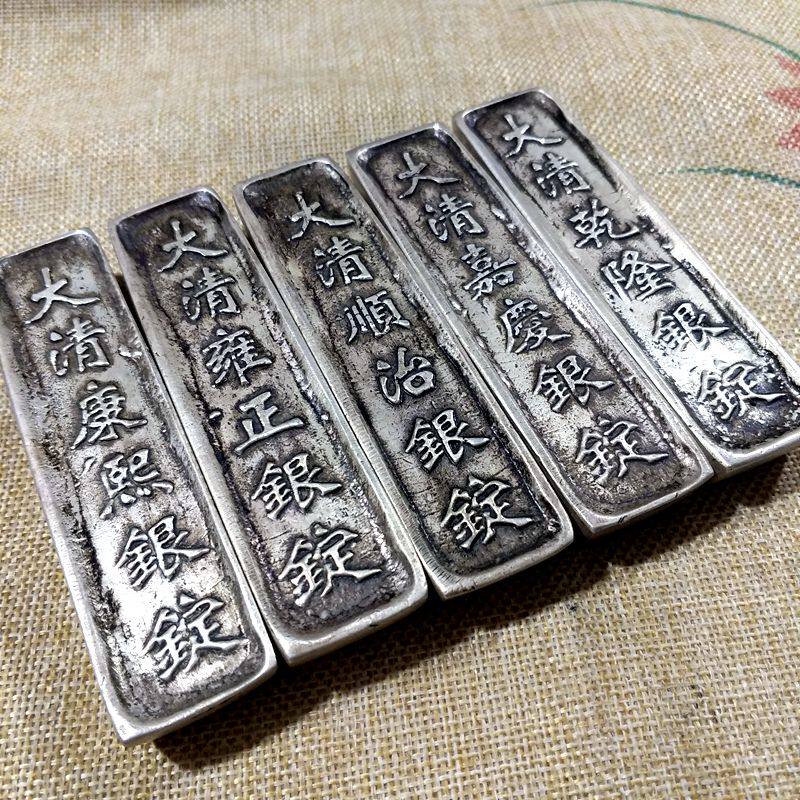 Antique play silver ingots silver Yuanbao ancient coins old coins old Yuan Baosho silver twelve silver ingots silver ingots grand clear front five emperors silver ingots