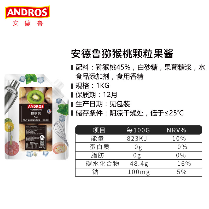 andros Andrew kiwi fruit pellet jam 1KG milk tea raw material wholesale kiwi fruit pulp puree