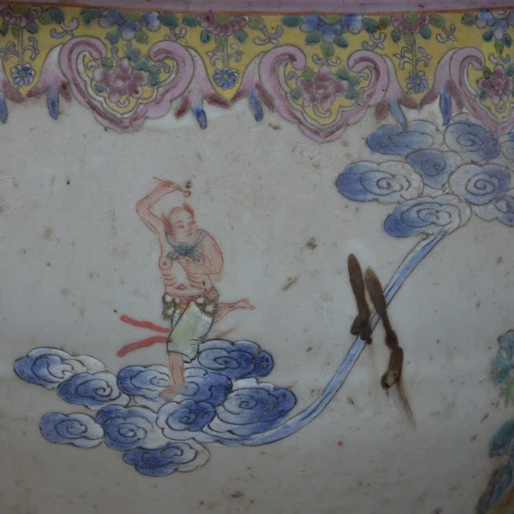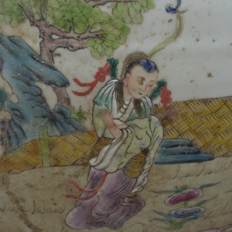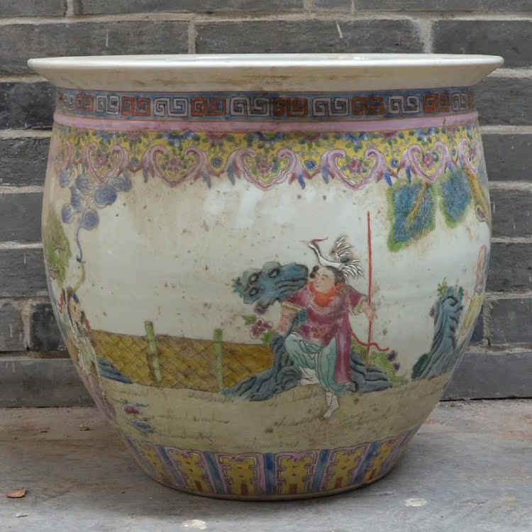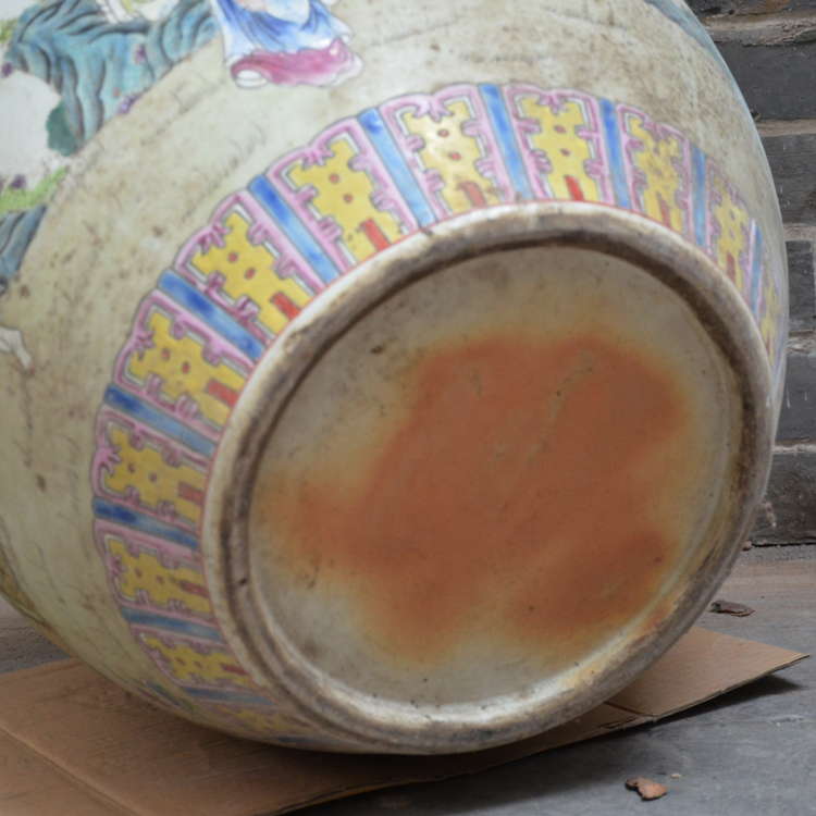Ancient Play Antique Collection Jingdezhen Firewood Kiln Fired Hand-painted Pink Character Fish Tank Water Cylinder Solitary swing piece
