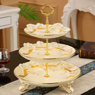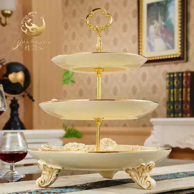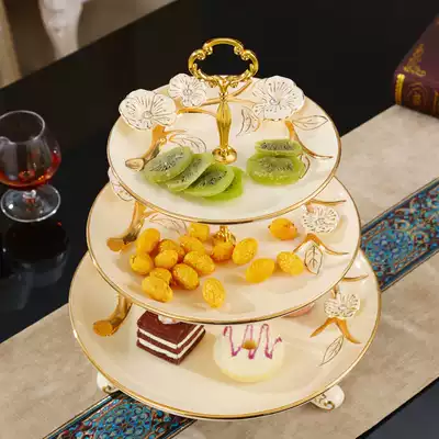 European-style ceramic dried fruit plate Three-layer afternoon tea heart plate Multi-layer fruit skewer plate Wedding cake dessert plate rack basket