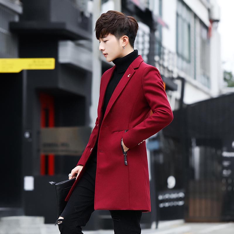 The wind coat men's medium long version of the body trendy winter coat with a kneecap, and a long version of the men's jacket