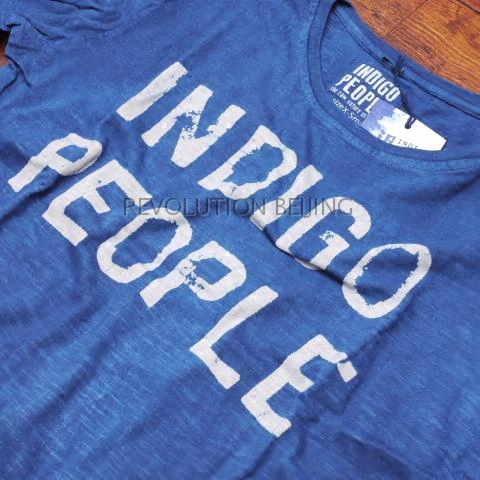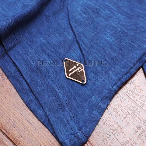 "China General Generation" Dutch Indigo People handmade tie-dye blue dye soft cotton LOGO long T-shirt