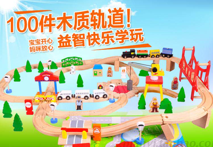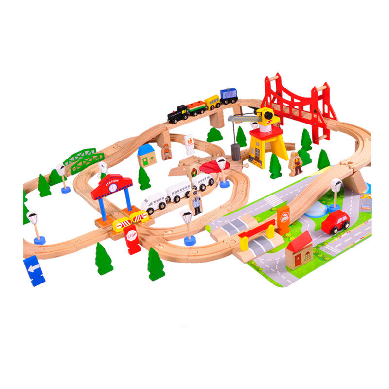 Export foreign trade original single wooden toys 100 pieces of beech wood train track set children 3-6 years old puzzle