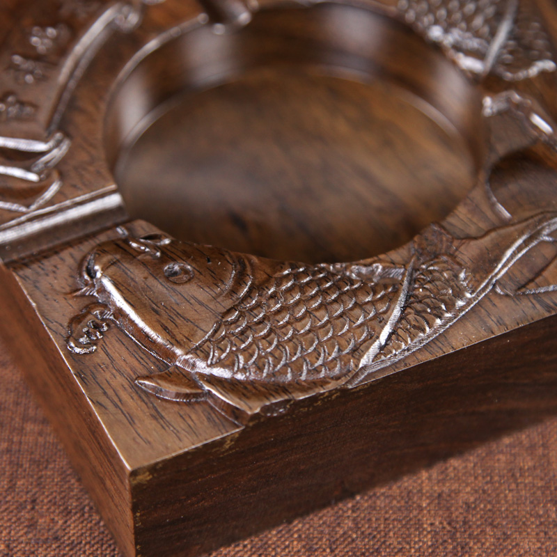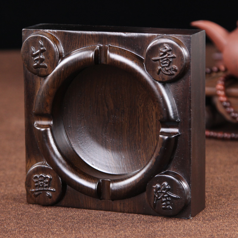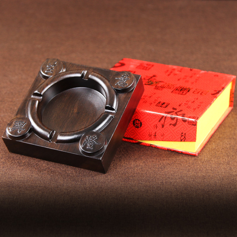 Ebony wooden cylinder solid wood antique ashtray classical square large cylinder ancient living room business gift