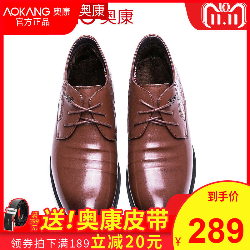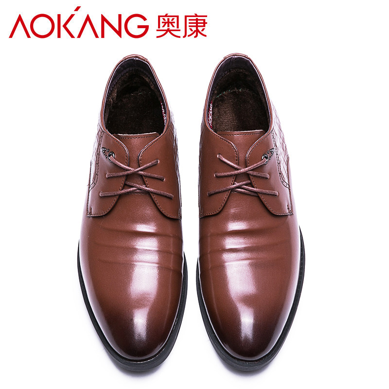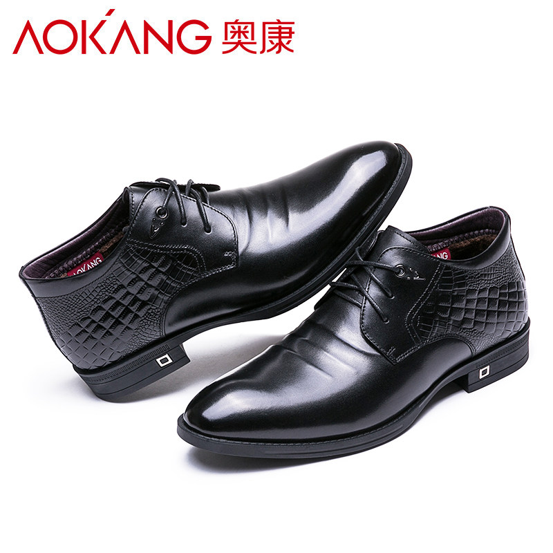 Okom Men Cotton Shoes Winter Gush Warm Leather Shoes Men Genuine Leather Pointed Lace Business Casual Dress High Cylinder Shoes