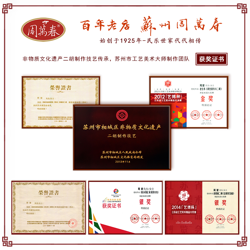 Zhou ten thousand Chunghong Red Wood Erhu Testing Examination First Scholar Professional Level Su Hexagonal Adult Musical Instrument Manufacturer Direct Marketing