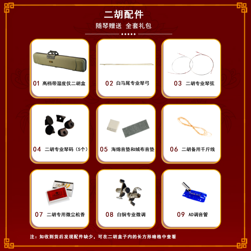 Red wood boutique Erhu a set of red wood silver silk professional Erhu set