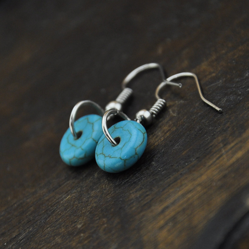 Retro ancient earwork pine stone exquisite small safe buckle earring female style classical ethnic wind original handwork start eardrop
