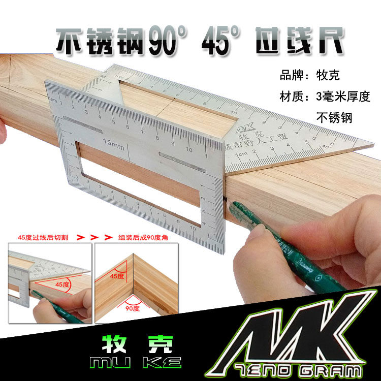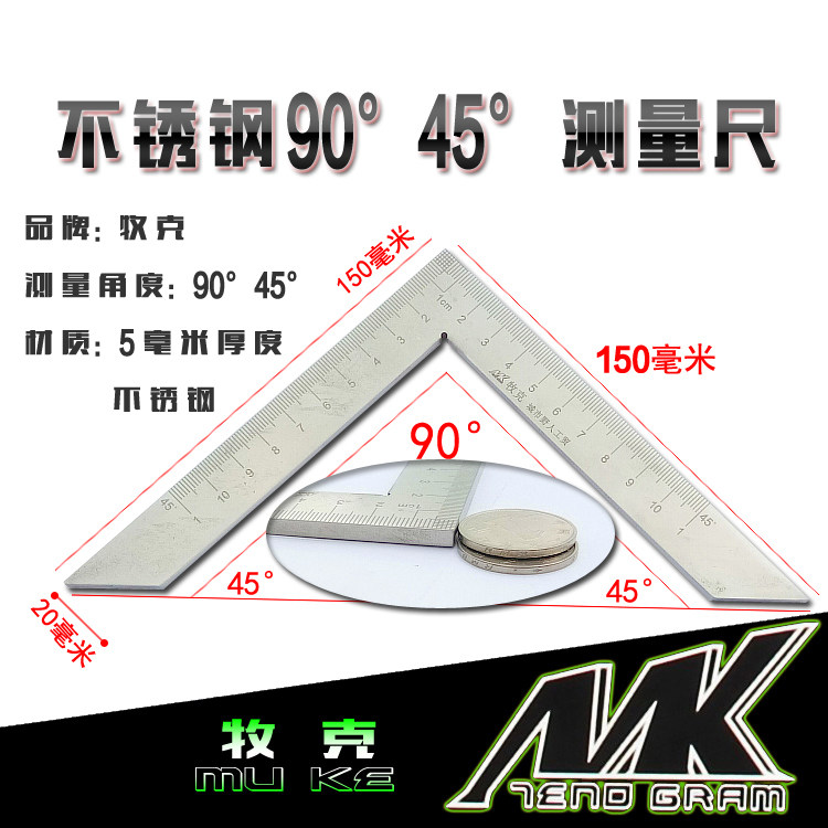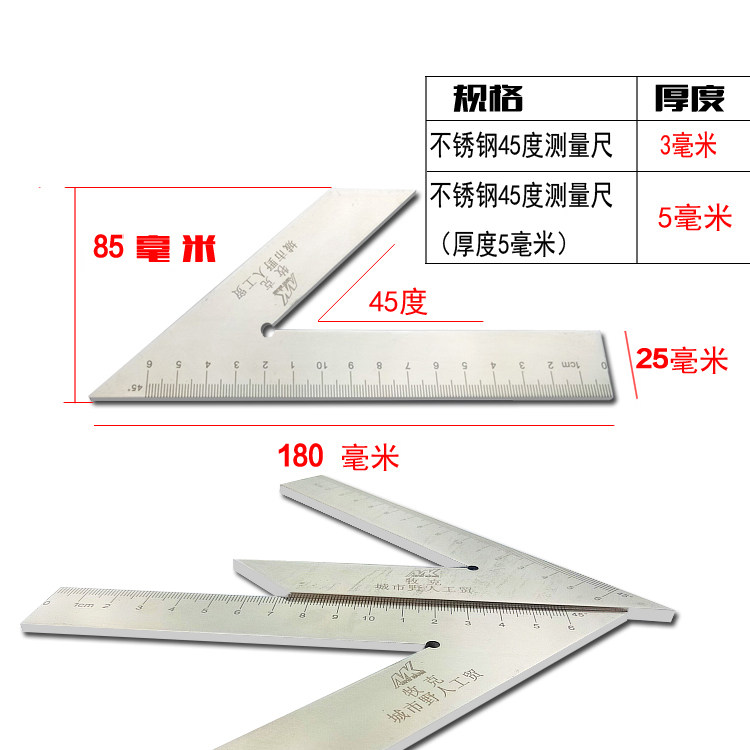 Stainless steel 45-degree measuring ruler (5 mm) A stainless steel 90 degrees 45 through wire ruler A-80 in stainless steel 90 degrees 45 through wire ruler A-120 in stainless steel 90 degrees 45 degrees