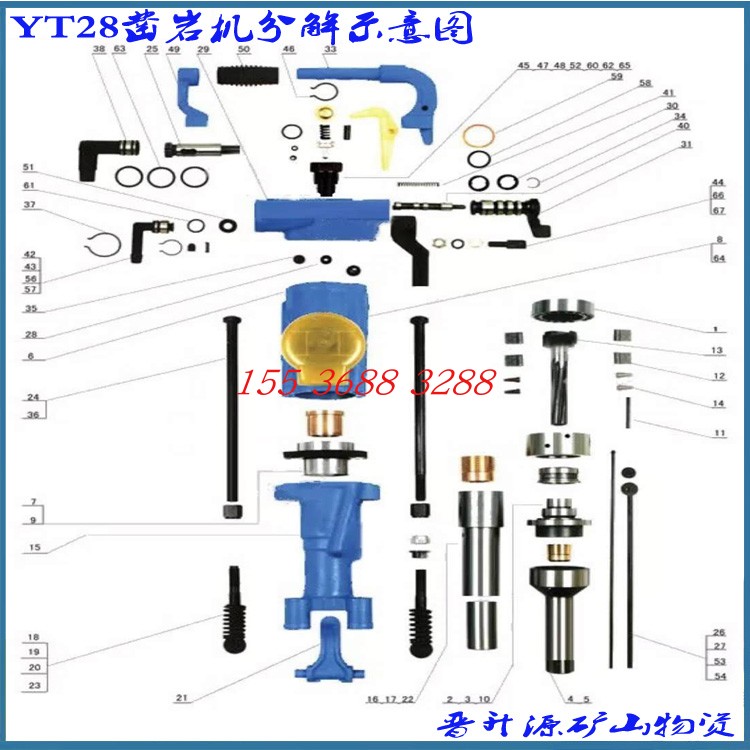 Tianshui Kaizan YT28 7655 Chisel Rock Machine Accessories FT160BC Air Leg Accessories Air Leg Repair Bag Rig Accessories