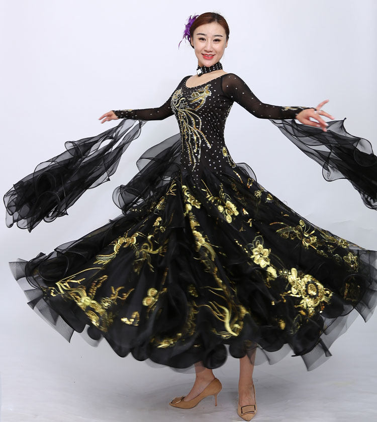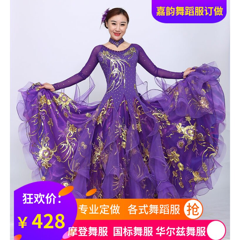 2020 embroidery new national standard dance modern dance dress ballroom dance skirt waltz dance costume performance big skirt