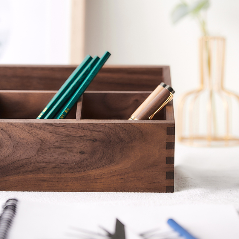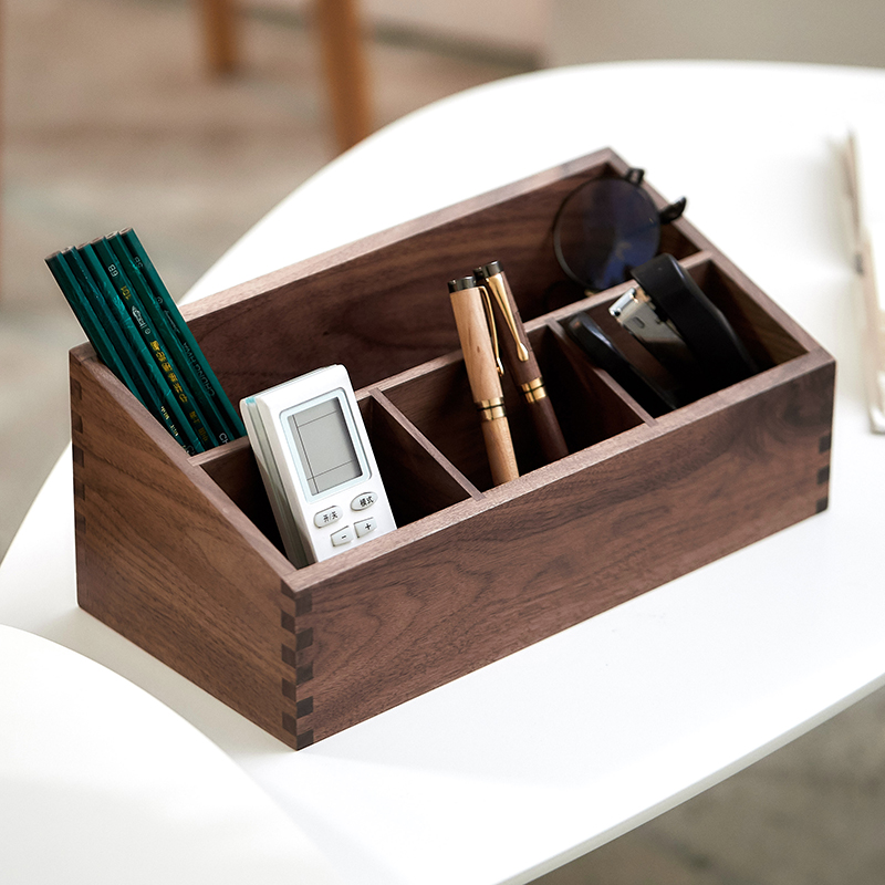 Black Houpeach wood multifunctional containing box solid wood living room tea table remote control containing box cosmetic finishing box frame