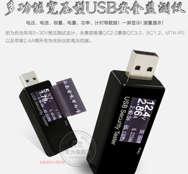 Torch as USB current voltage detector mobile power battery capacity tester test table detection table-Taobao