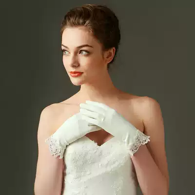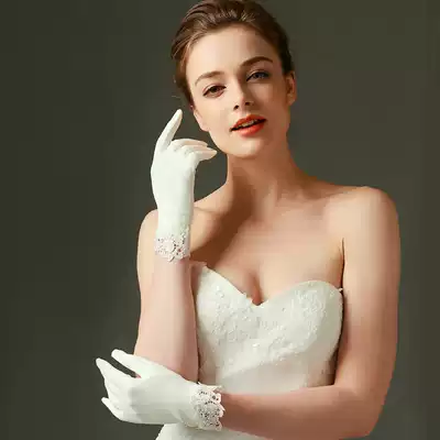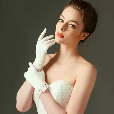 Wedding gloves Bride wedding gloves short gift instrument Super fairy simple elastic finger Korean white lace wedding