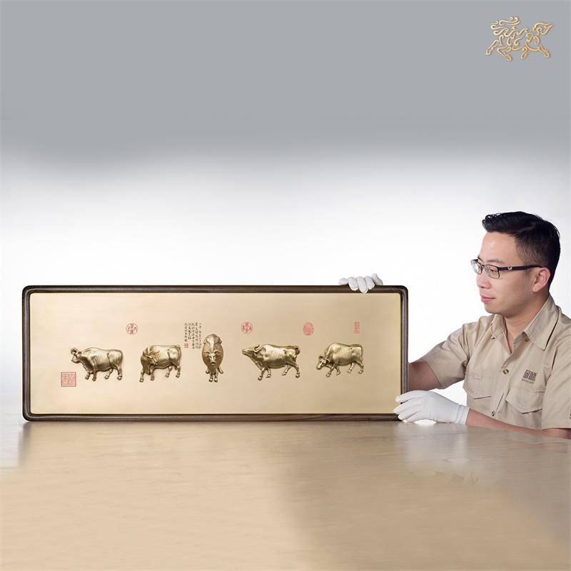 Copper Master's All-copper auspicious Five Niu Tutu Home Process Gift decoration Dining Room Wall-mounted Craft Gift Pendulum Decoration Gift