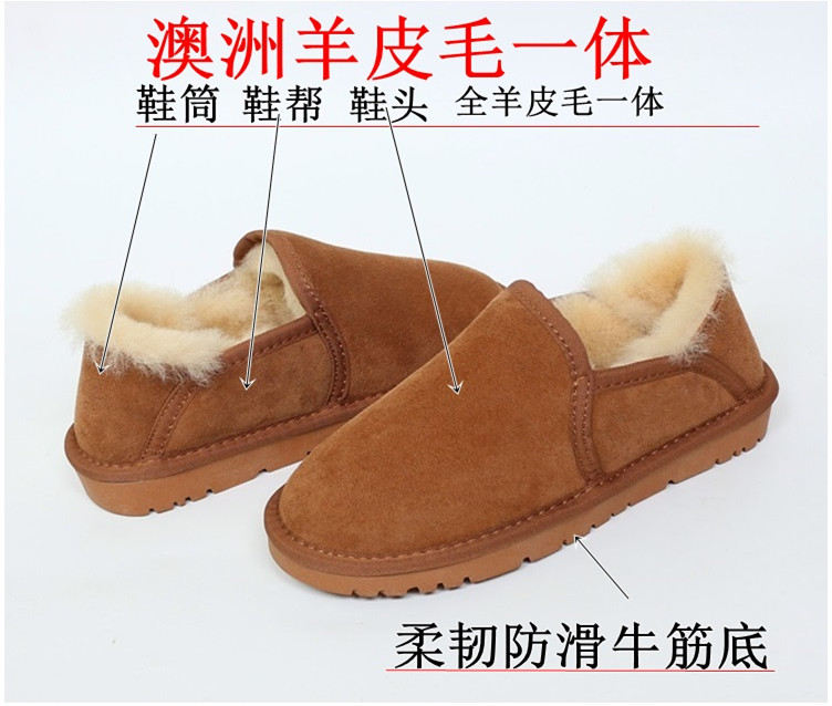 Couples sheepskin and fur one snow boots men's short barrel winter thick wool cotton one pedal women's low-top bread shoes