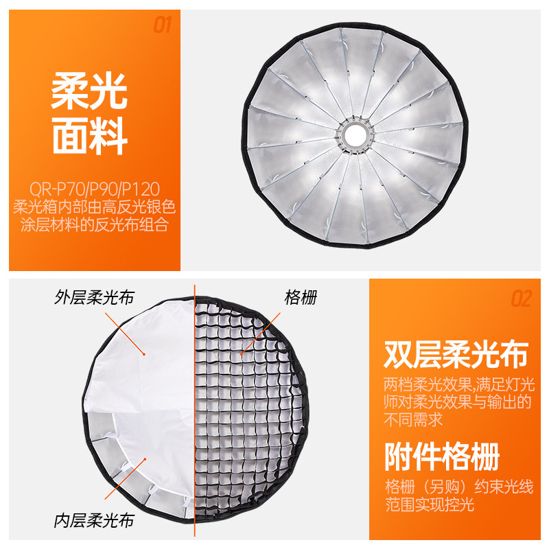 God Bull QR-P70 QR-P90 QR-P120 QR-P120 flexo light box honeycomb grille grid Quick fit flexo light cover 120cm90cm70 Photograph shed for flash depth