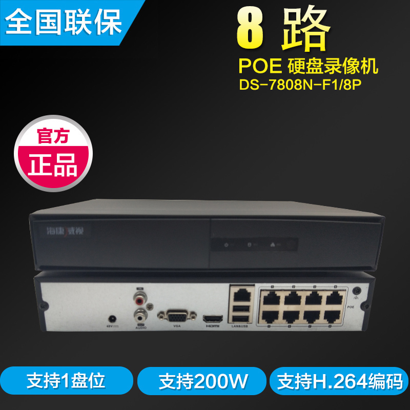 Hikvision DS-7808N-F1 8P network POE hard disk recorder 8 road 200 monitoring host H264